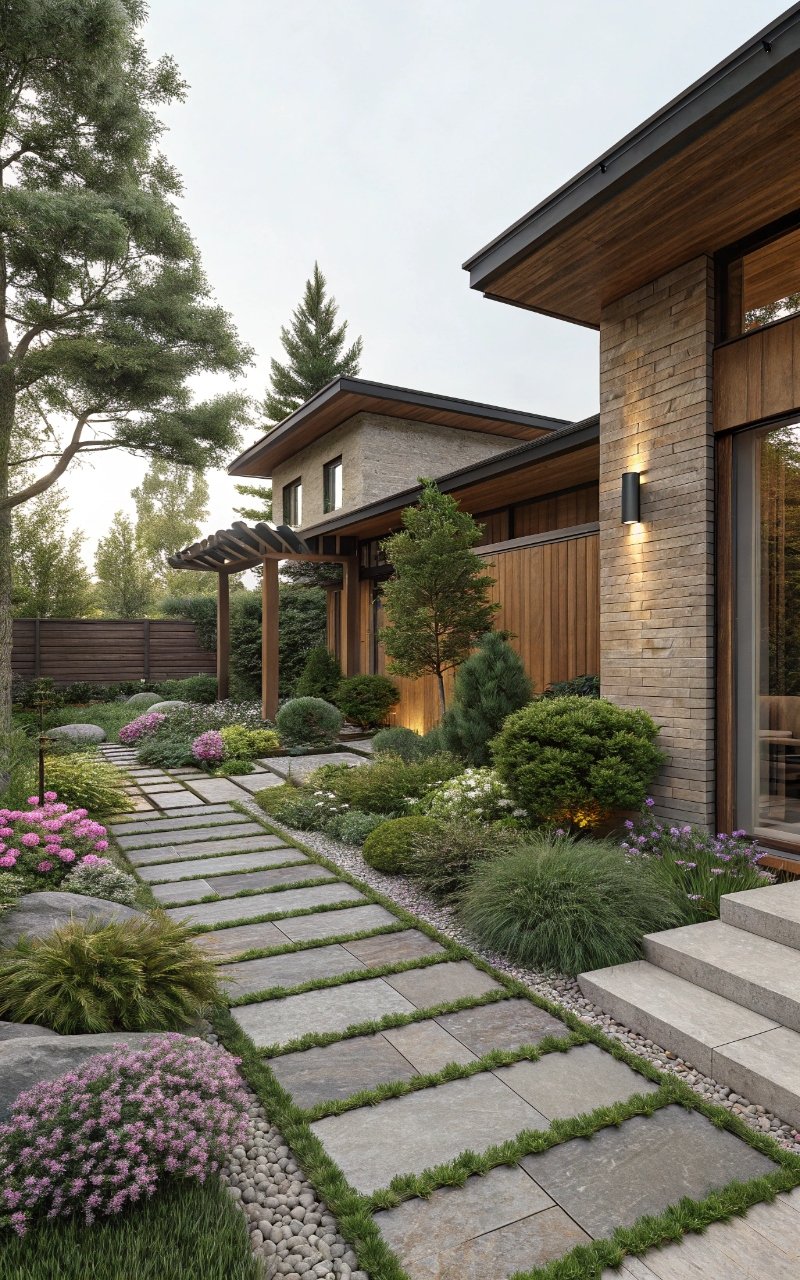 Combining stone, wood, and plants added texture and depth to my yard. The variety of materials and layered design create visual interest. I love how it feels balanced and dynamic. It’s not overly complicated, but it stands out. Have you ever mixed materials like this? It makes a big difference.