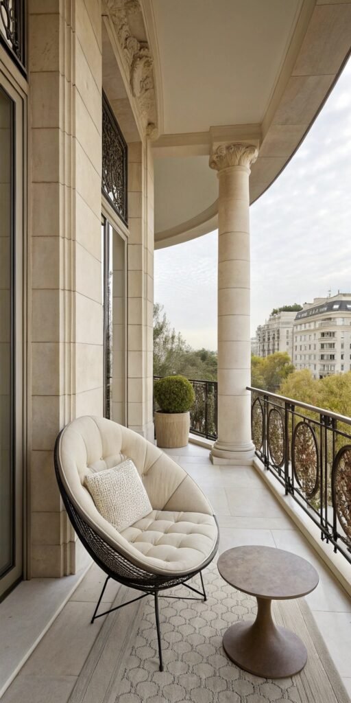 Sculptural furniture elevates balconies instantly. I love pieces with clean curves or bold silhouettes. The space feels artistic and refined. Nothing feels generic. Doesn’t form define luxury? Statement shapes create visual impact effortlessly.