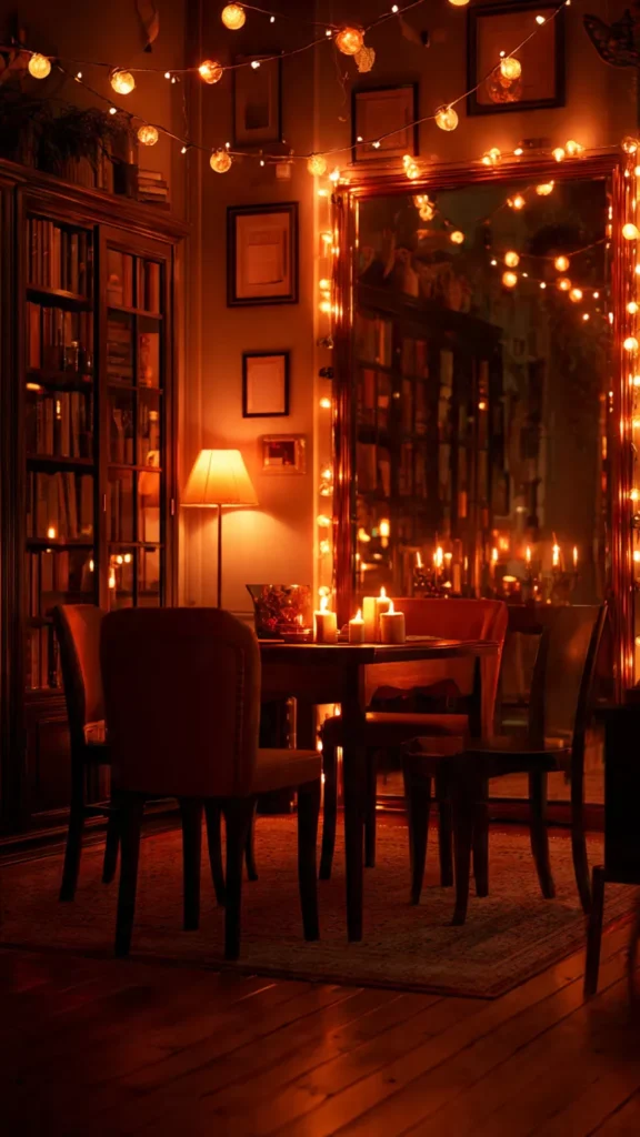Table decor doesn’t stop at the table itself. Lamps or string lights around the room enhance the overall mood. I’ve noticed how ambient light makes dinners feel longer and more relaxed. Why rely on overhead lights when warmth feels better? This glow completes the atmosphere.