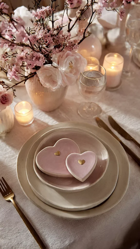 Heart motifs can feel romantic when used lightly. Small heart-shaped dishes or napkin rings add charm without feeling childish. I’ve learned less is always more with themed decor. Doesn’t subtlety feel more elegant? This keeps the table refined.