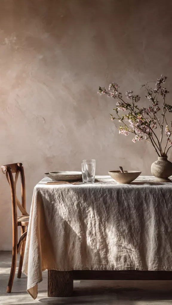 A linen tablecloth creates an effortless, romantic foundation. The natural wrinkles add texture and warmth without feeling fussy. I’ve always loved how linen feels relaxed but elevated at the same time. Doesn’t fabric instantly change the mood of a space? It sets the tone before anything else is added.