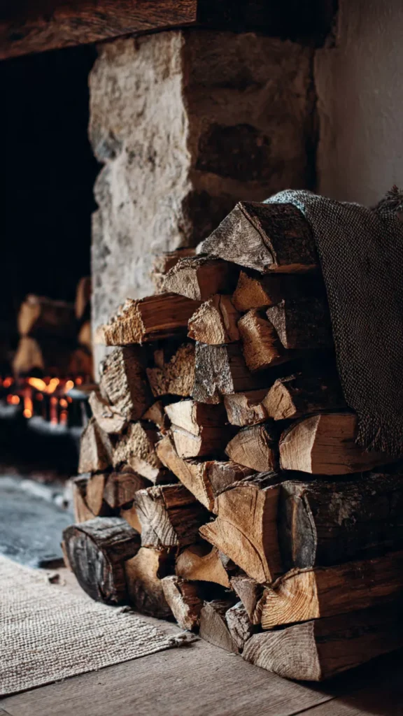 Even if purely decorative, stacked logs instantly add rustic authenticity. The natural shapes and warm tones feel iconic beside a hearth. I always think of crisp winter nights when I see them. Doesn’t it evoke the coziest memories?