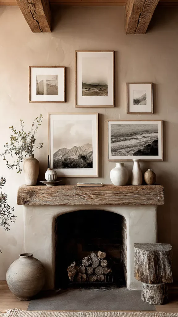 Wood instantly brings rustic warmth to a hearth. Whether it’s a reclaimed mantel, stacked logs, or wooden decor accents, the grain and texture add organic beauty. I love how wood softens even the most modern spaces. Doesn’t raw material feel so honest and grounding?