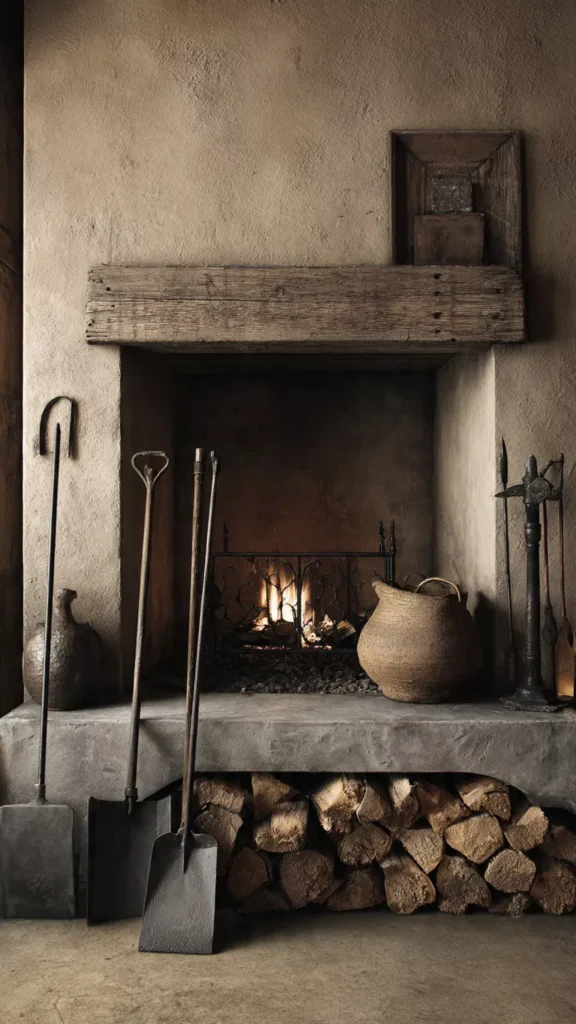 Wrought-iron or dark metal tools add rustic character and functionality. Their simple silhouettes feel timeless. I love the subtle contrast between metal and natural materials. Doesn’t the mix feel beautifully balanced?