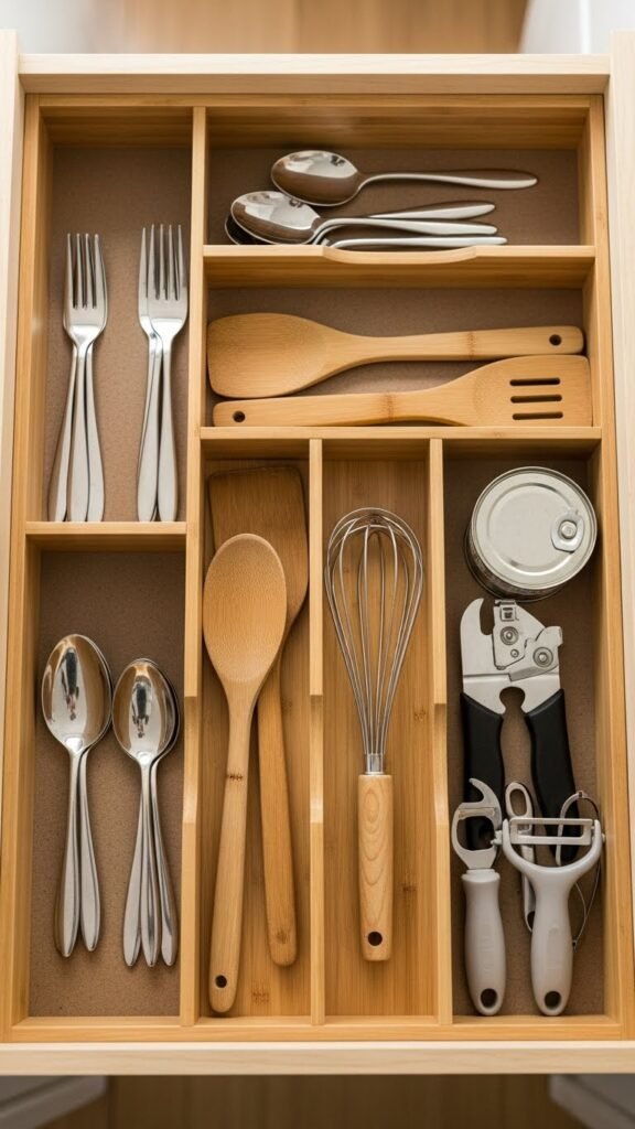 Drawer dividers create neat sections for utensils and tools, making everything easy to find. I love how this small change instantly improves organization. No more digging through messy drawers. The kitchen feels calmer. Doesn’t order make daily tasks easier? It’s a simple but powerful solution.