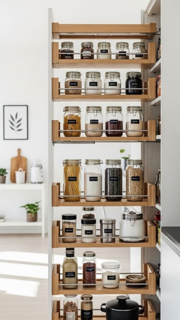 Pull-out shelves let you see everything at once, which makes storage more efficient. I love how nothing gets lost in the back of a cabinet. It feels modern and practical. The kitchen becomes easier to use. Doesn’t visibility make organization feel effortless? It’s a game-changer.