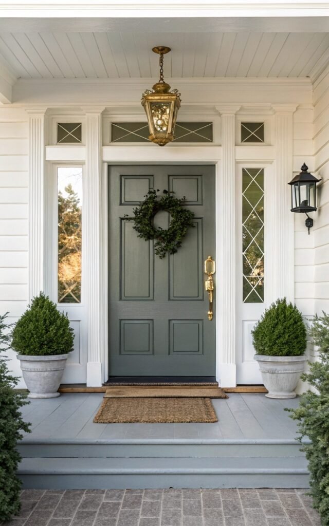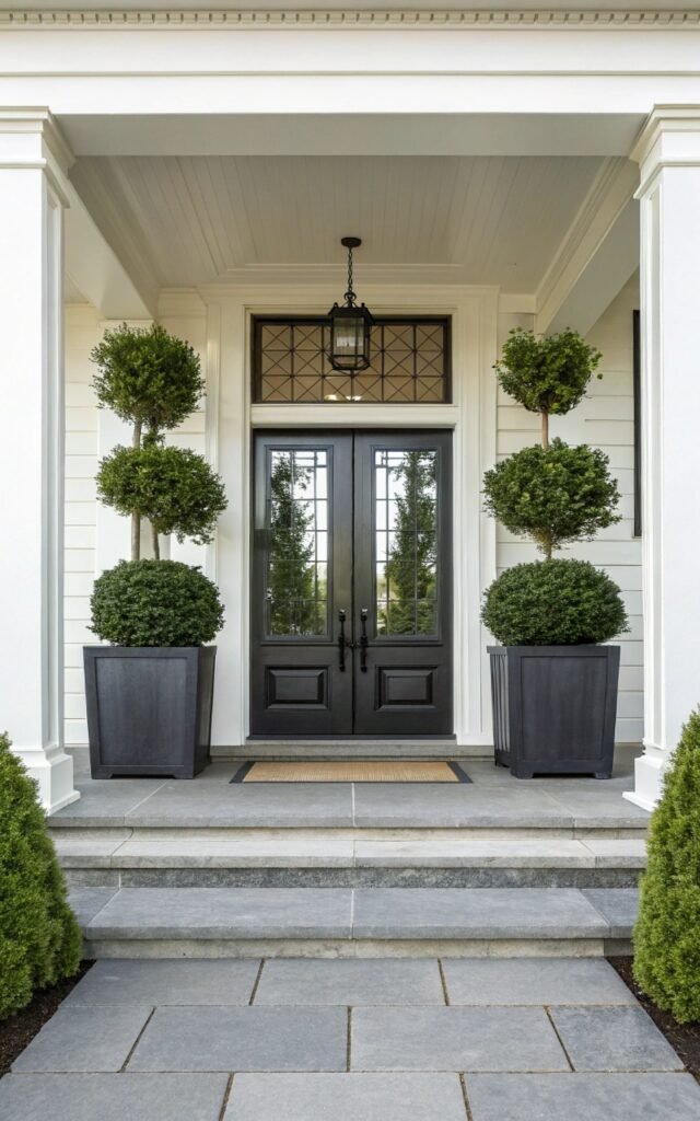 Front door decor doesn’t need to be elaborate to look expensive. Often the most elegant entrances rely on balance, symmetry, and a few thoughtfully chosen details.