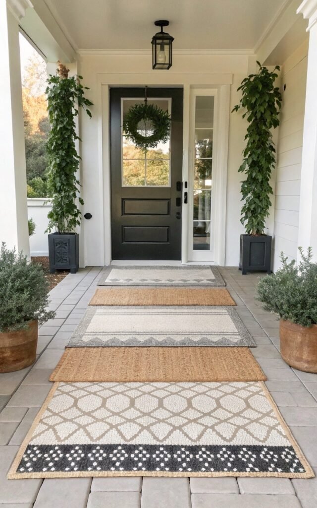 Layering a neutral doormat over a larger rug creates depth. I love subtle patterns that add texture. The entrance instantly feels styled. Nothing feels plain. Doesn’t layering look intentional? It’s a simple upgrade.