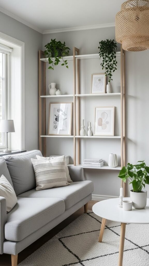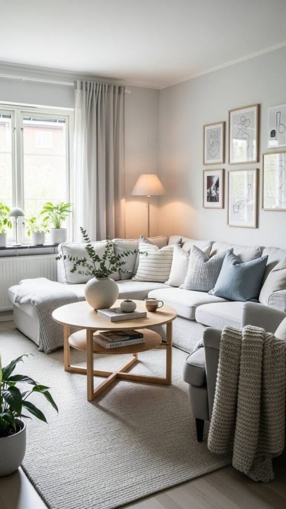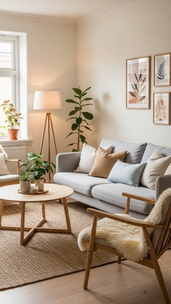 Plants bring life into a small Scandinavian living room without adding clutter. I love how greenery softens clean lines. The room feels fresh and inviting. Even a single plant changes the mood. Doesn’t nature make everything better? It adds warmth and energy.