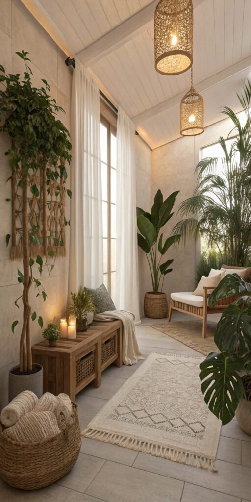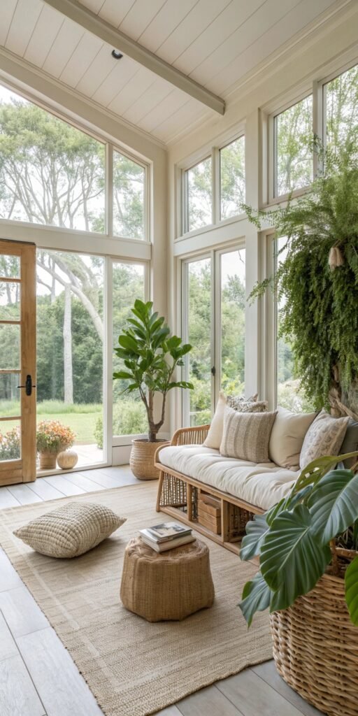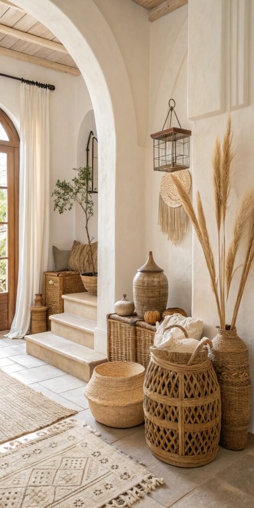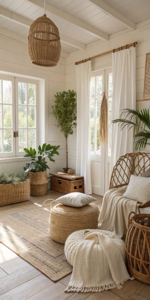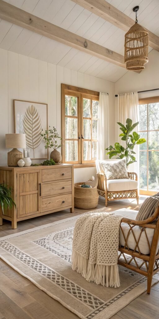 Neutral foundations amplify organic decor. I love soft whites, creams, and warm beige tones. The room feels cohesive and calming. Nothing feels visually chaotic. Doesn’t softness define serenity? Neutral palettes elevate natural styling effortlessly.