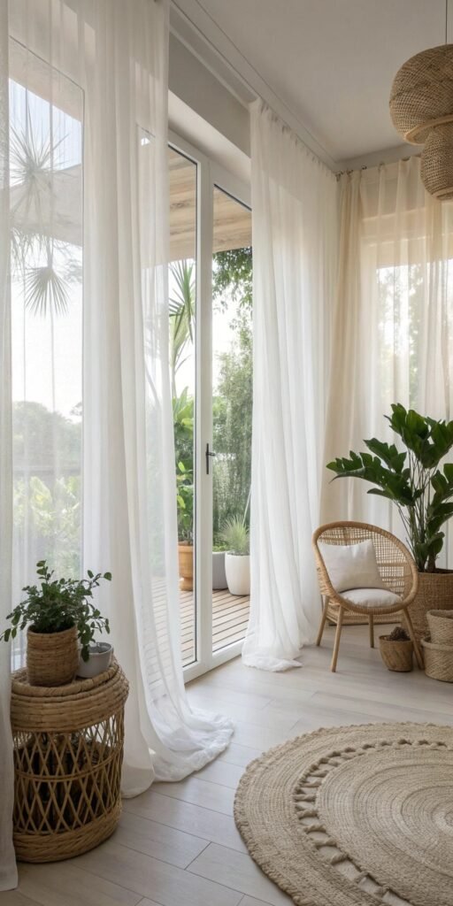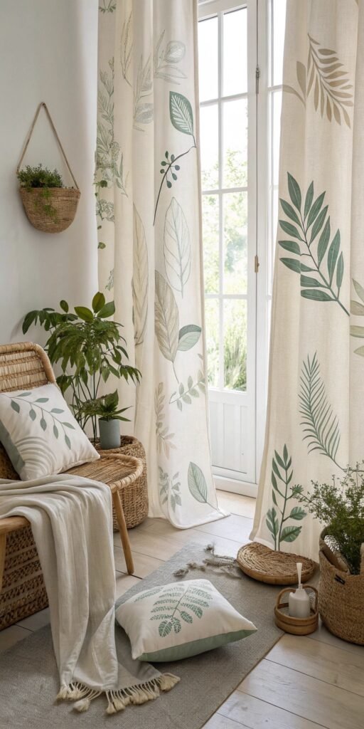 Botanical textiles add gentle visual interest. I love subtle leaf or floral patterns. The room feels fresh and cohesive. Nothing feels overwhelming. Doesn’t nature-inspired texture soften spaces? Soft prints enhance organic charm beautifully.