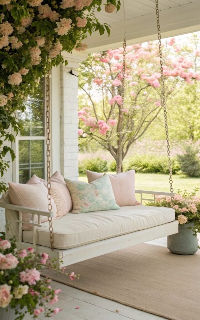 Outdoor pillows instantly soften a porch. I love using floral or pastel pillow covers. The space feels comfortable and styled. Nothing feels stiff. Doesn’t color add personality? It’s an easy seasonal update.