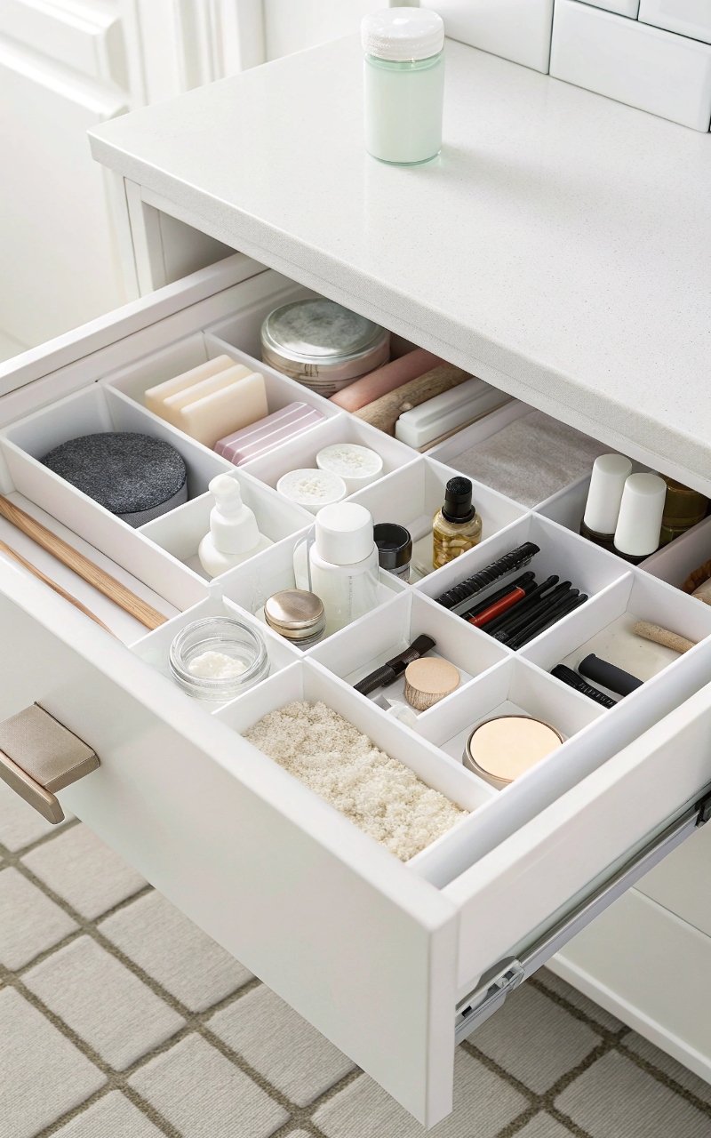 Pro Tip: Use adjustable dividers to customize your drawer space.