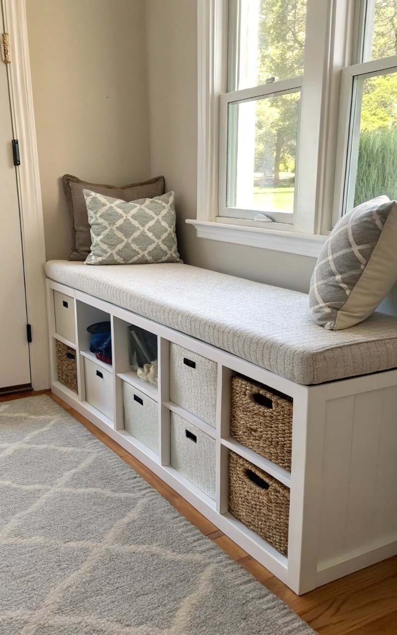 Turning a KALLAX unit into a bench gave me both seating and hidden storage in one move. The cube compartments and added cushion top make it functional without sacrificing style. I love how it creates a place to sit while keeping clutter tucked away. It’s perfect for entryways or small spaces. Have you ever wished your furniture could do more than one job? This hack does exactly that.