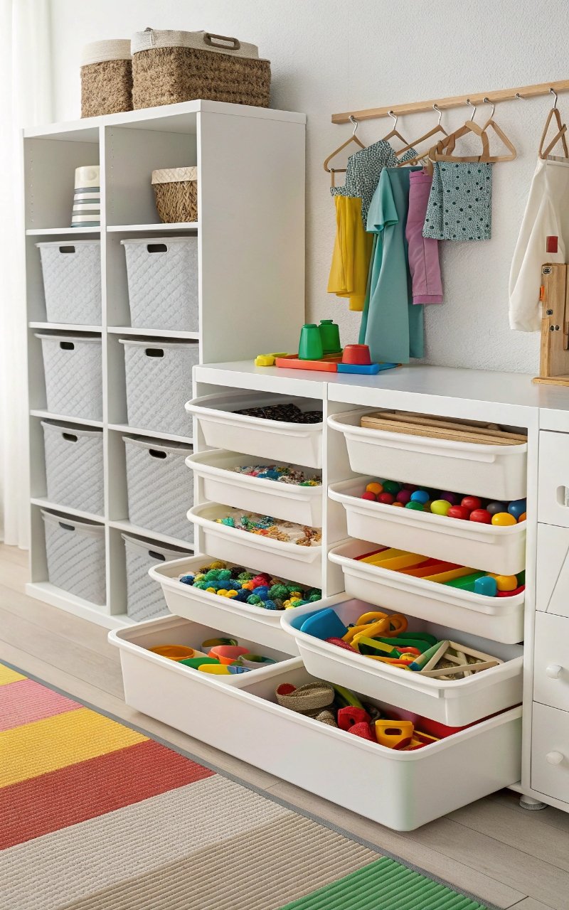 Pro Tip: Use clear bins so you can quickly see what’s inside.