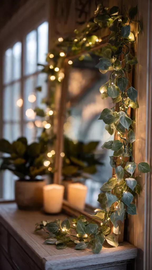 Garlands draped around mirrors, shelves, or door frames bring movement and charm to the winter entryway. Add twinkle lights and suddenly the whole space feels like a quiet holiday evening—even long after the holidays have passed. This is one of those décor touches that makes you pause because it simply feels good. Isn’t there something irresistible about soft winter lights? They have a way of making even routine mornings feel special.