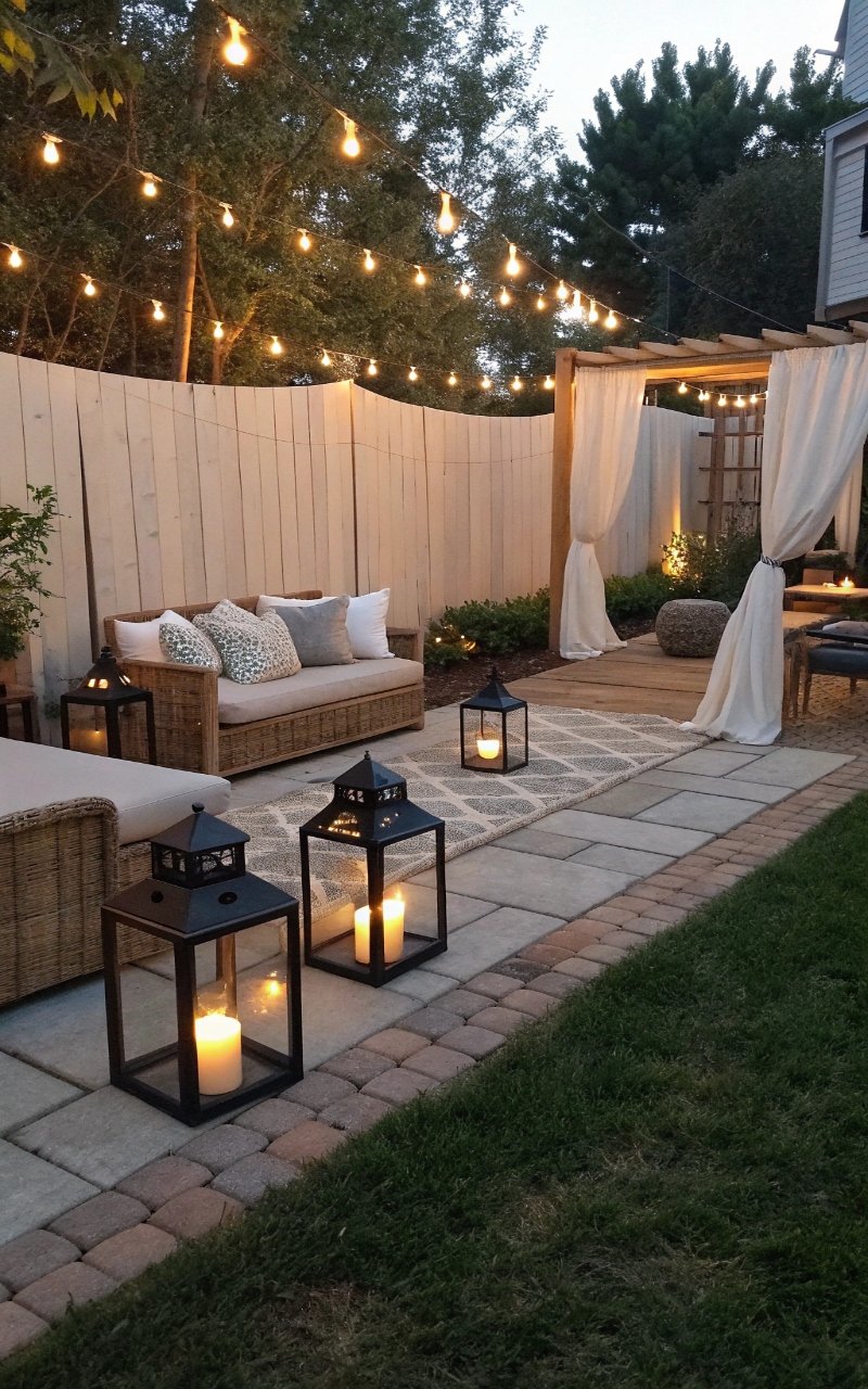 Lanterns create soft layered lighting. I love placing them around seating areas. The backyard feels cozy. Nothing looks too bright. Doesn’t layered lighting feel better? It really does.