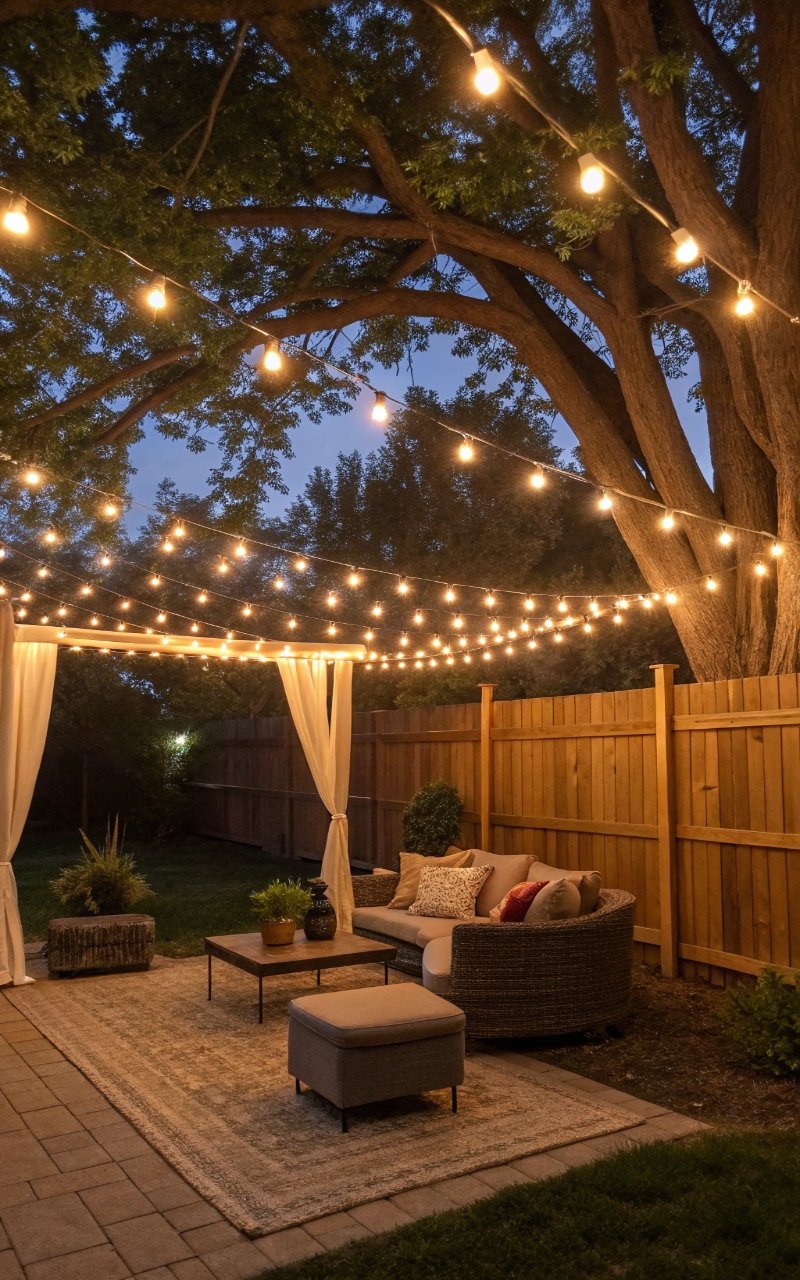 String lights bring instant ambiance. I love how they create a warm glow at night. The space feels magical. Nothing feels harsh. Doesn’t lighting set the mood? It really does.
