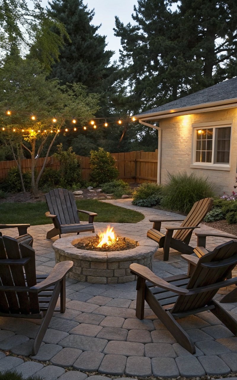 A fire pit creates a cozy gathering area. I love the warmth and glow it provides. The space feels welcoming. Nothing feels formal. Doesn’t firelight make everything better? It really does.