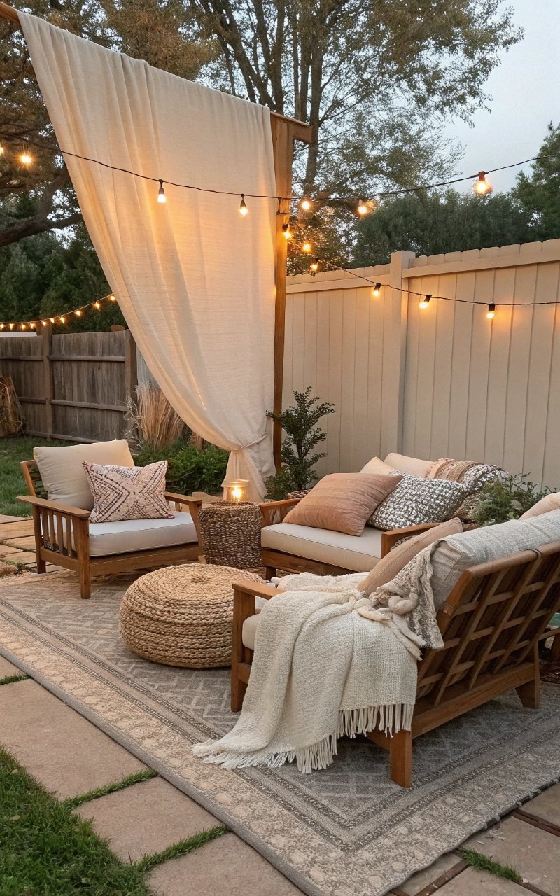 A comfortable seating setup is the heart of any backyard oasis. I love layering cushions and soft textures. The space feels inviting instantly. Nothing feels cold. Doesn’t comfort define relaxation? It absolutely does.
