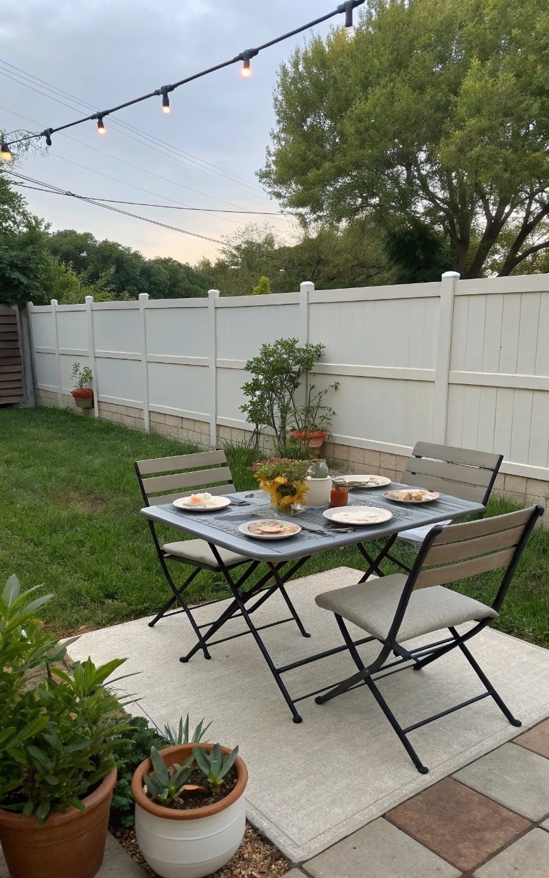 A small dining area adds function. I love having a place to eat outside. The backyard feels complete. Nothing goes unused. Doesn’t outdoor dining feel special? It does.