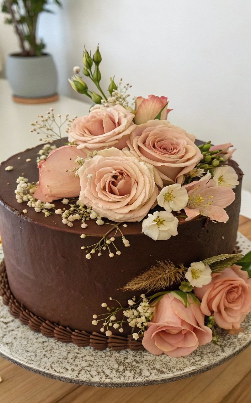 Adding flowers transformed the cake into something elegant and eye-catching. The soft blooms and rich chocolate base create a beautiful contrast. I love how it feels both bold and delicate. It’s perfect for special birthdays. Doesn’t a touch of floral make everything prettier? This one proves it.