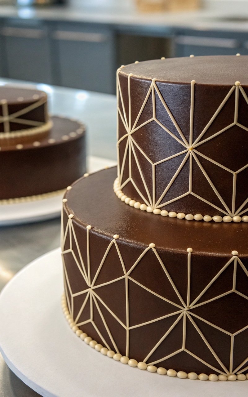 Adding geometric patterns gave the cake a modern edge. The sharp lines and structured design create a bold, stylish look. I love how it feels different from traditional styles. It’s clean and eye-catching. Have you ever tried patterns like this? This one stands out.