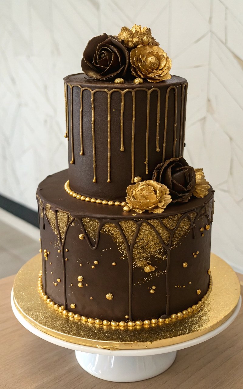 14. Chocolate Gold Accent Cake