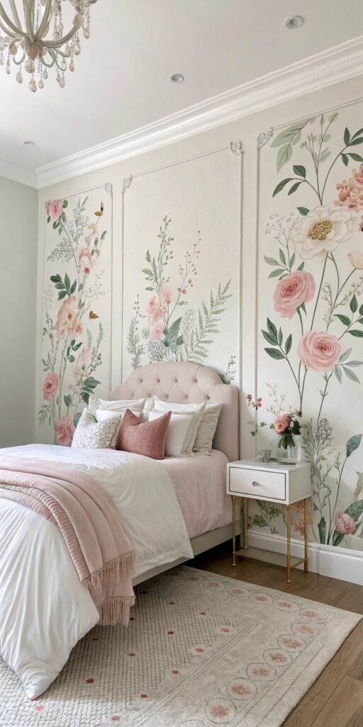 Floral accent walls create subtle visual impact. I love how soft patterns add romance without overwhelming the space. The room feels layered and elegant. Nothing feels heavy. Doesn’t gentle drama feel more refined? Florals reshape walls beautifully.