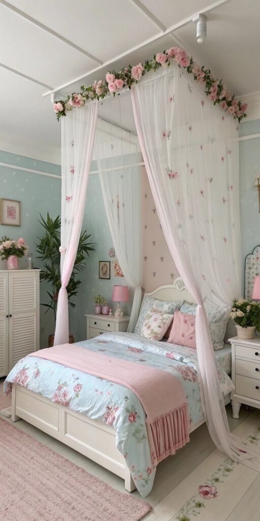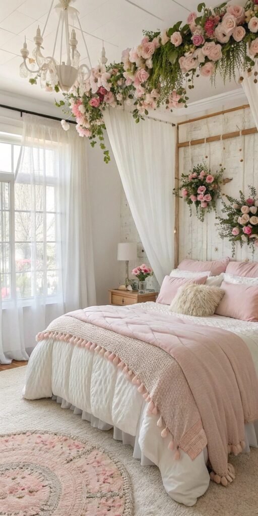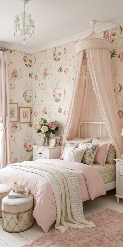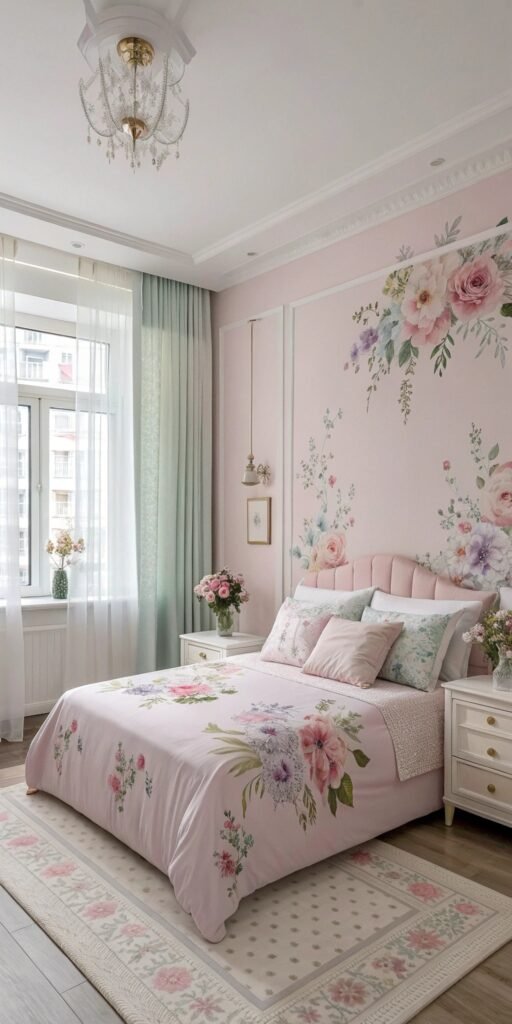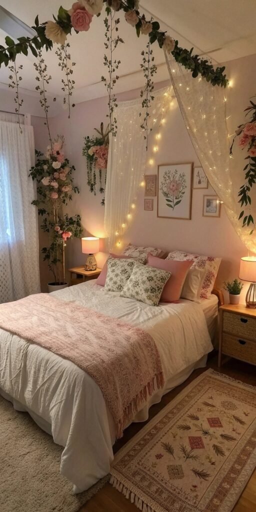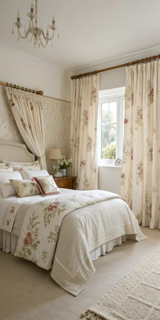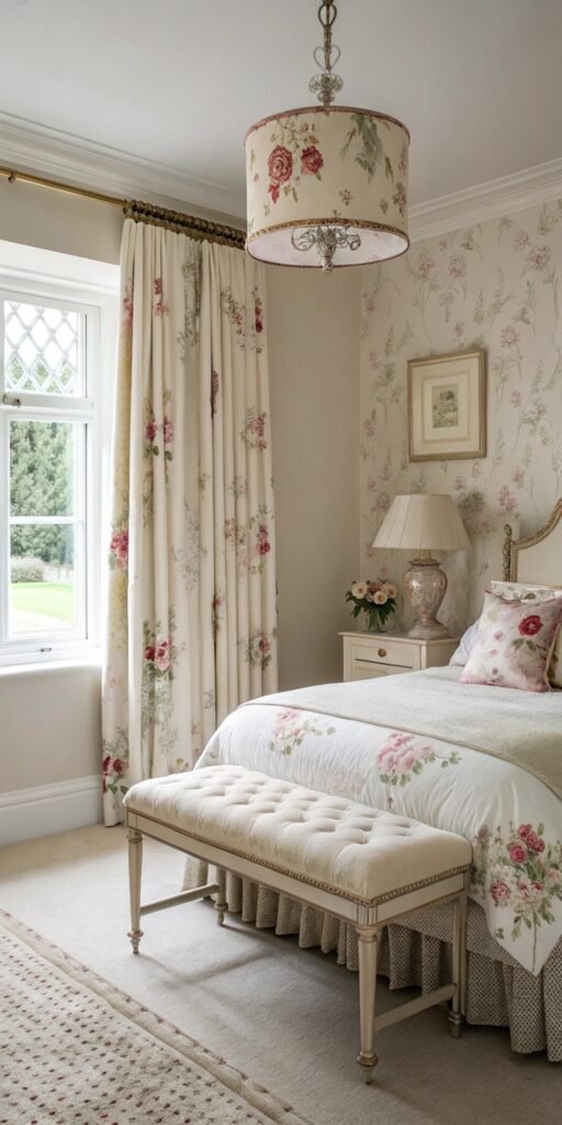 Lighting transforms floral bedrooms completely. I love warm bulbs that soften colors and textures. The room feels calm and cozy. Shadows feel gentle. Doesn’t warm light create intimacy? It enhances romantic styling beautifully.