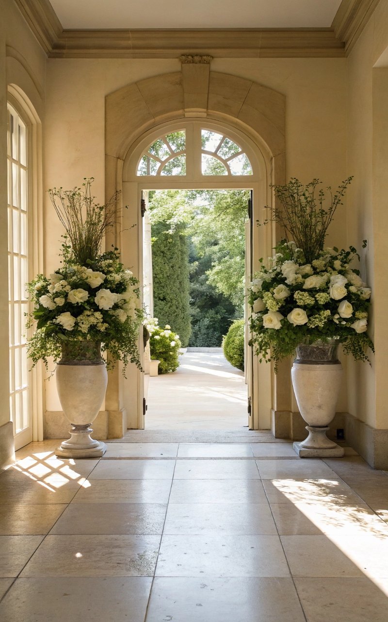 Placing matching pots filled with greenery and flowers on either side of an entry created a balanced look. The mirrored arrangement and lush mix feel clean and welcoming. I love how it frames the space beautifully. It’s simple, but very effective. Doesn’t symmetry just feel satisfying? This one adds instant polish.