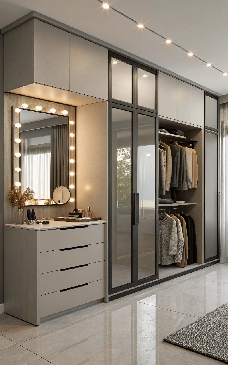 Adding a small vanity section inside the wardrobe created a functional getting-ready space. The integrated design and practical layout keep everything in one place. I love how it adds convenience without taking extra room. It feels like a mini dressing area. Have you ever wanted your closet to do more? This one delivers.