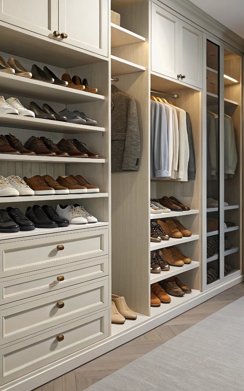 Customizing shelf heights for shoes made a huge difference in organization. The tailored spacing and clean rows keep everything visible and neat. I love how it prevents shoes from piling up. It feels more structured. Have you ever struggled with messy shoe storage? This one fixes it.