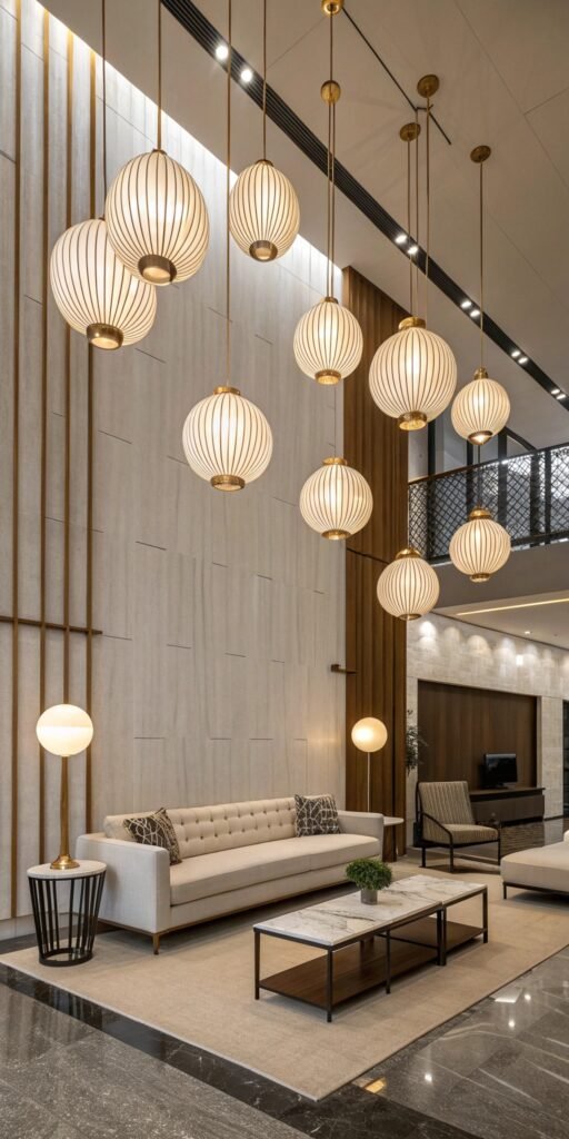 Pendant clusters feel bold yet elegant. I love how grouped fixtures create sculptural rhythm. The room feels dynamic. Lighting becomes composition. Doesn’t repetition enhance visual flow? Clusters add drama without heaviness.