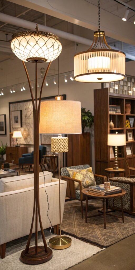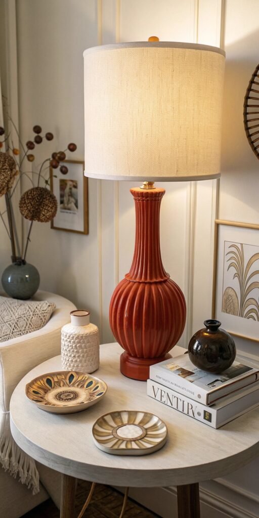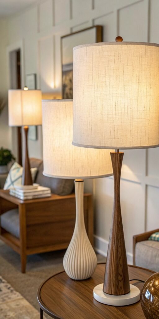 Mid century table lamps often feel like art. I love bold ceramic or wood bases with clean lines. The decor feels intentional. Lighting becomes decorative. Doesn’t sculptural lighting elevate surfaces instantly? These pieces add personality effortlessly.