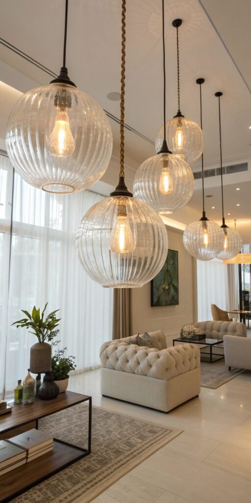 2. Globe Pendant Lights for Soft Elegance