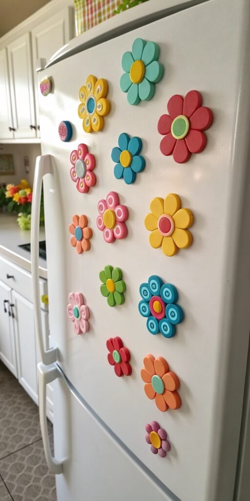 Magnets are quick and fun to make. I love shaping small circles or flowers and attaching magnets after drying. They feel playful and useful. Nothing feels overly complicated. Isn’t functional decor the best kind? They brighten up any fridge.