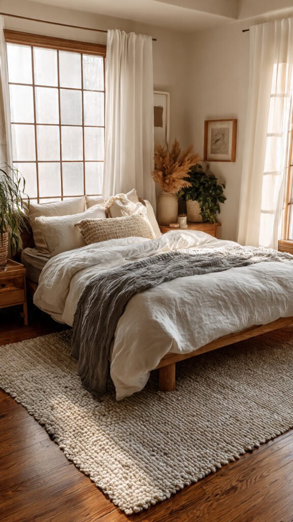 A soft rug adds instant warmth. I love neutral rugs with subtle texture. The bedroom feels cozy from the ground up. Bare feet feel welcome. Doesn’t comfort underfoot matter more than pattern? Rugs complete the space quietly.
