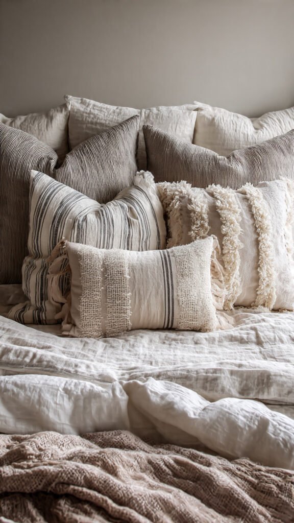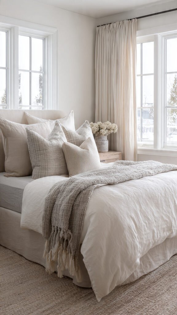 Layering bedding creates that inviting, sink-in feeling. I love crisp white sheets paired with soft linen duvets. The bed feels relaxed, not formal. Comfort becomes visible. Doesn’t layered bedding make sleep feel more intentional? It’s cozy without being heavy.