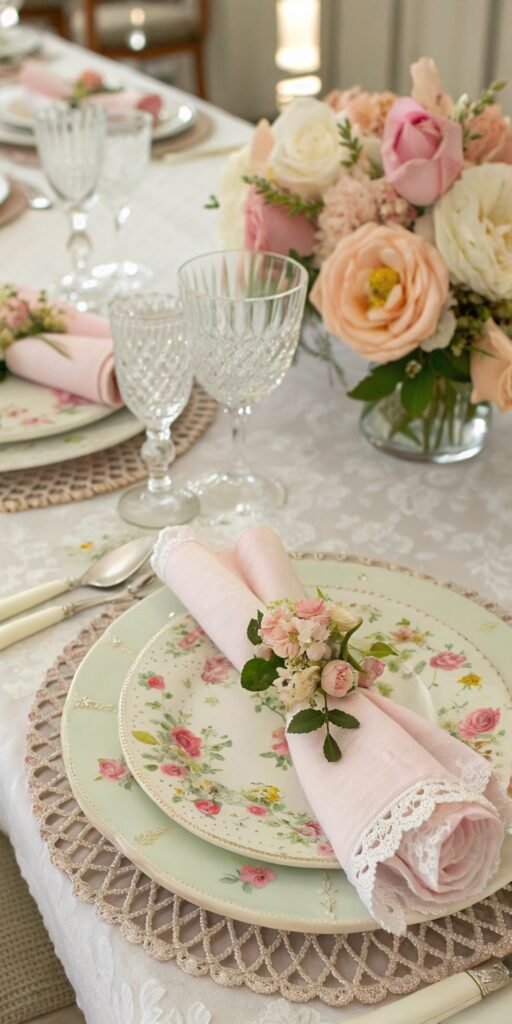 Greenery adds life instantly. I love how subtle leaves balance soft florals. The table feels organic and breathable. Texture feels natural. Doesn’t greenery always ground decor beautifully? It enhances softness effortlessly.