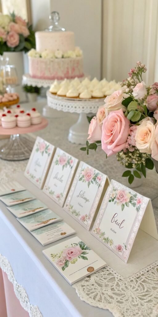 Soft floral centerpieces instantly define the Baby in Bloom aesthetic. I love how delicate blooms create romance without overwhelming the table. The setup feels fresh and airy. Nothing feels heavy or crowded. Doesn’t floral softness always feel celebratory? Simple arrangements create timeless charm.