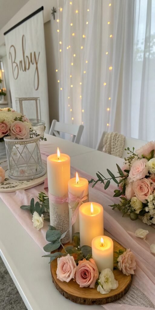 Candles create instant warmth. I love how soft glow enhances floral setups beautifully. The table feels cozy and inviting. Lighting softens everything. Doesn’t candlelight always elevate decor? It adds romance without complexity.
