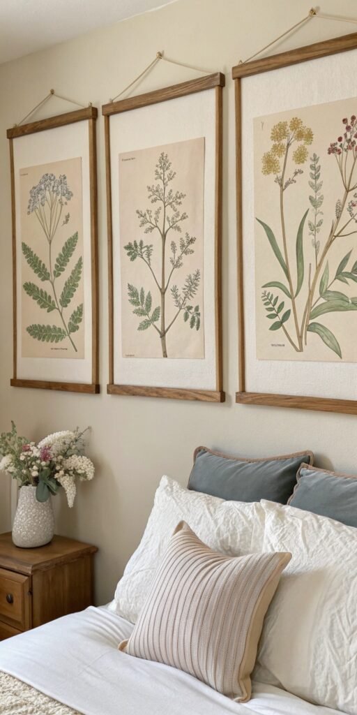 Wall art adds depth without cluttering surfaces. I love botanical prints or muted vintage illustrations. The room feels curated and personal. Nothing feels generic. Doesn’t art shape mood? Vintage visuals enhance warmth effortlessly.