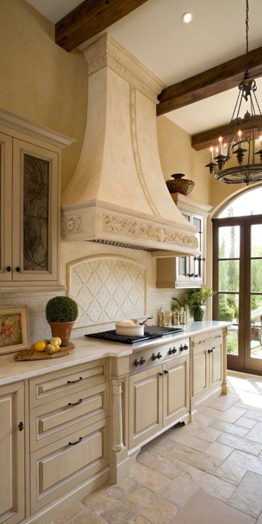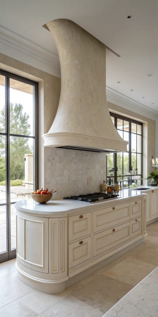 Plaster-inspired designs feel elegant and timeless. I love the soft curved edges that add subtle architecture. The hood looks custom and refined. Nothing feels boxy anymore. Doesn’t softness make a difference? It’s perfect for Mediterranean kitchens.