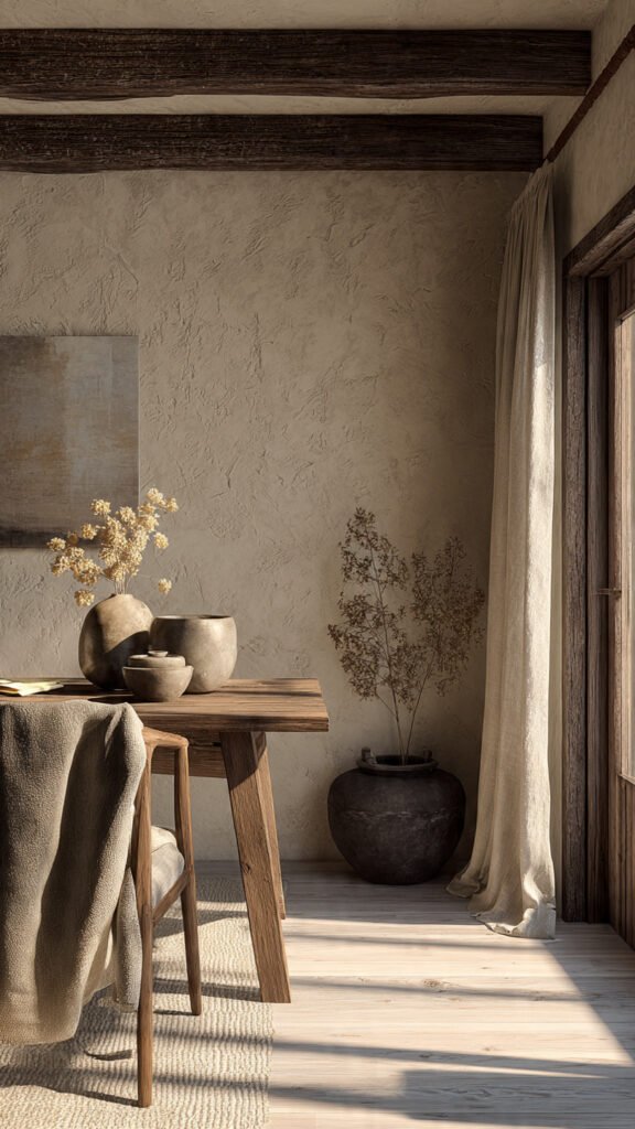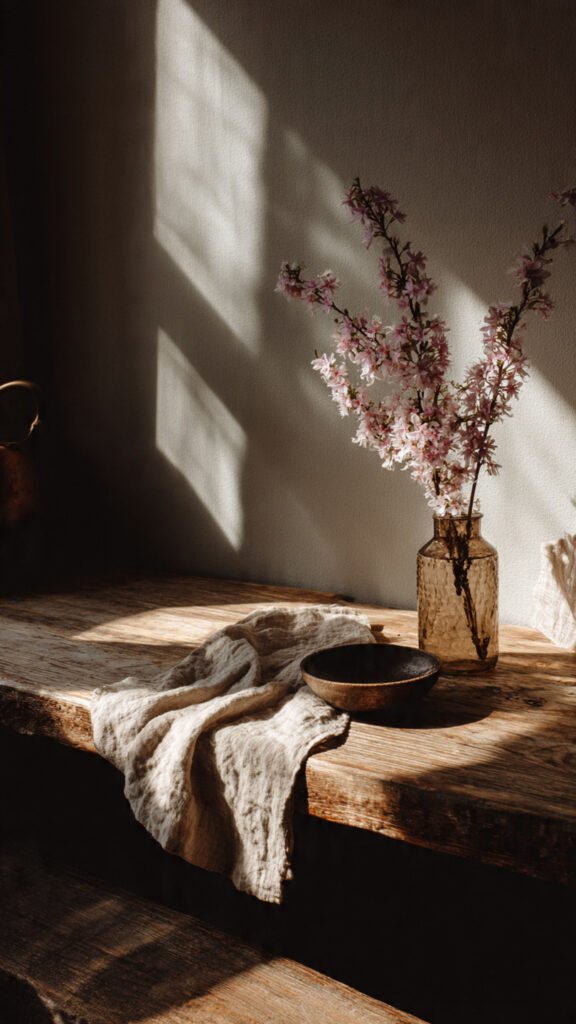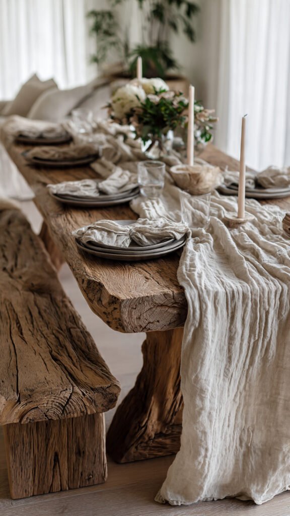 Sometimes less really is more. I love leaving wooden tables mostly bare and adding just one linen accent. The space feels calm. Wood gets to shine. Doesn’t restraint make decor feel more honest? This approach feels authentic.
