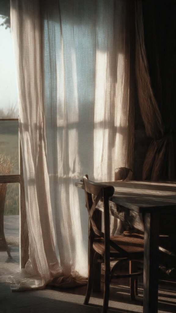 Linen curtains filter light softly. I love how they warm rooms with wooden furniture. The space feels calm and gentle. Light feels diffused. Doesn’t softened daylight change the mood entirely? Linen makes everything feel quieter.