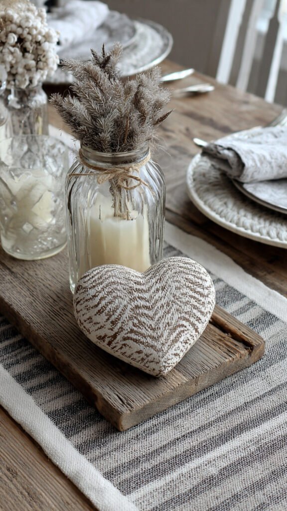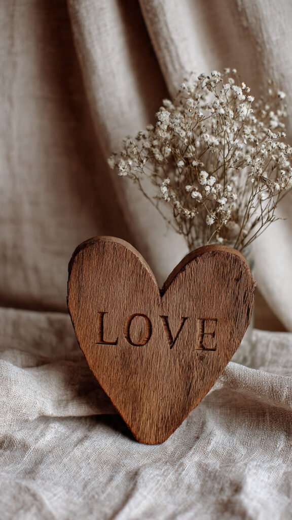 Wooden hearts feel especially cozy when paired with linen textures. I love placing them on shelves layered over linen runners or cloths. The contrast feels soft and intentional. Nothing feels flashy. Doesn’t natural texture make decor feel more heartfelt? It creates instant warmth.