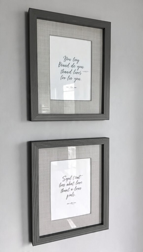 Frames feel warmer when paired with linen mats. I love displaying simple love quotes this way. The decor feels thoughtful. Nothing feels loud. Doesn’t material choice elevate even simple prints? Linen adds depth quietly.