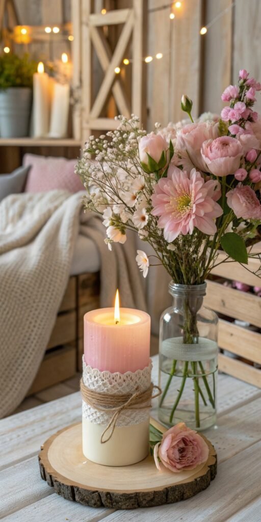 Candles and florals feel magical together. I love handmade holders paired with delicate blooms. The glow highlights textures gently. The room feels inviting. Doesn’t soft lighting transform decor? DIY pairings create effortless warmth.