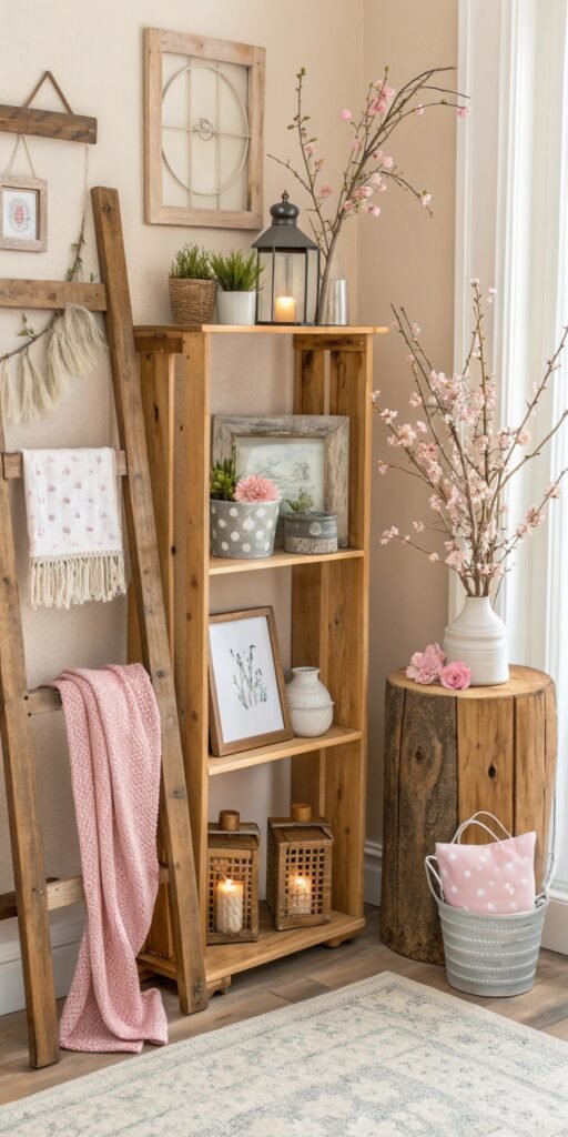 DIY accents refresh shelves instantly. I love mixing handmade pieces with florals and candles. The space feels curated and warm. Nothing feels cluttered. Doesn’t thoughtful styling enhance atmosphere? Shelves become cozy focal points.